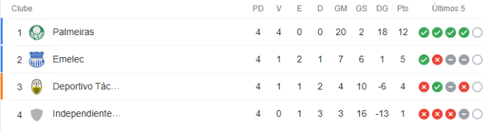 O Palmeiras é líder do Grupo A da Copa Libertadores 2022, com 100% de aproveitamento até ao momento. Com um registro de 20 gols marcados e 2 sofridos, os comandados de Abel Ferreira venceram a última partida, contra o Independiente Petrolero, por 5-0, garantindo assim a classificação para o mata-mata, bem como o 1º lugar do grupo.