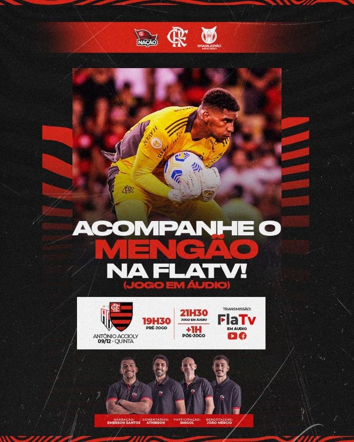 O Flamengo encerra sua temporada 2021 com a última rodada do Campeonato Brasileiro 2021 nessa quinta-feira (9). Vice-campeão brasileiro, o Mengão encara o Atlético-GO às 21h30, no Estádio Antônio Accioly, em Goiânia, em partida que vale muito para o Dragão que sonha com vaga na Copa Libertadores 2022 com a pré-Libertadores.