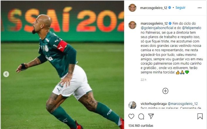 Apesar das saídas surpreenderem pela velocidade no processo, internamente os jogadores sabiam que a atual e próxima presidência do clube queria rejuvenescer o elenco e, para isso, demitiram o goleiro Jailson, de 40 anos, e o volante Felipe Melo, de 38 anos. A decisão, porém, chateou Marcos que ficou muito triste como relatou em postagem nas redes sociais.