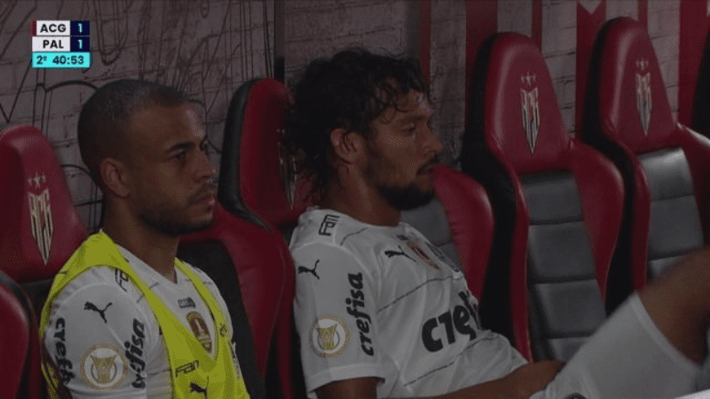 Gustavo Scarpa foi flagrado irritado no banco de reservas do Palmeiras após ser substituído no segundo tempo do empate contra o Atlético-GO, na noite desta segunda-feira, em Goiânia, pela 31ª rodada do Campeonato Brasileiro. O meia vinha fazendo boa partida até deixar o campo aos 36 minutos da etapa final para a entrada de Rafael Navarro. O Verdão, que saiu na frente e cedeu o empate, não conseguiu o gol da vitória e a manutenção da vantagem de 12 pontos na liderança.