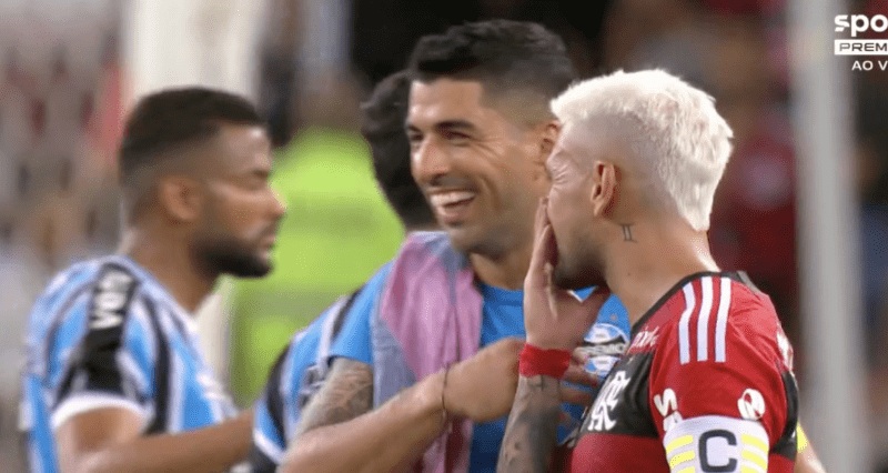 Após a eliminação do Grêmio, os jogadores se cumprimentaram de forma cordial após a partida. Contudo, chamou atenção que Luis Suárez estava muito sorridente após a eliminação e interagindo com vários jogadores do Flamengo. Mas chamou atenção, que o atacante estava muito feliz, diferente dos outros jogadores do tricolor.
