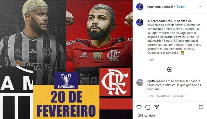 Atlético-MG e Flamengo decidirão a Supercopa do Brasil 2022 que está marcada para o dia 20 de fevereiro do ano que vem, mas com o palco da grande final ainda sem definição, o que pode levar o duelo para os Estados Unidos na próxima temporada, algo que romperia as barreiras do futebol brasileiro pela possibilidade do confronto em outro país.