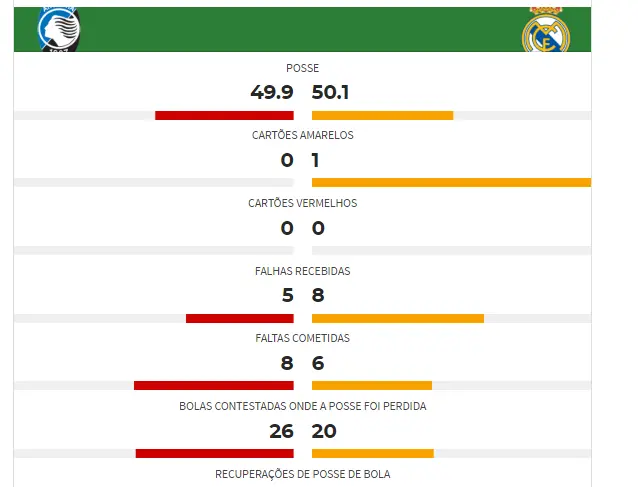 Estatísticas do primeiro tempo do Atalanta 1-1 Real Madrid