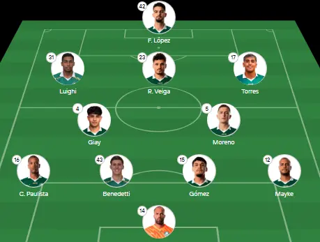 • Melhor chance do Palmeiras: A melhor oportunidade do Palmeiras no primeiro tempo veio com Gustavo Gómez, em uma cabeçada quase perfeita após uma ótima jogada de Facundo Torres, que fazia sua estreia na equipe. No entanto, Felipe Alves fez uma grande defesa, evitando o gol.