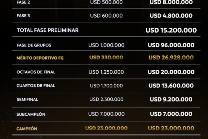 Enquanto o vencedor da UEFA Champions League leva para casa apenas 20 milhões de euros, que foi o que o Real Madrid ganhou, este año a Conmebol superou todos os prémios económicos, sendo a mais poderosa nesse sentido.