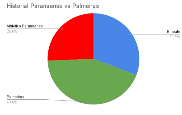 Dos 39 jogos disputados entre os dois, o Athletic Paranaense conseguiu apenas 10 vitórias contra as 17 do Palmeiras. Os restantes 12 jogos foram empates.