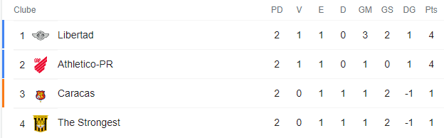 O Athletico conseguiu sua primeira vitória na competição na 2ª rodada, num triunfo por 1-0 contra o The Strongest, da Bolívia. Com isso, o Furacão passou para o 2º lugar do Grupo B, em zona de classificação.