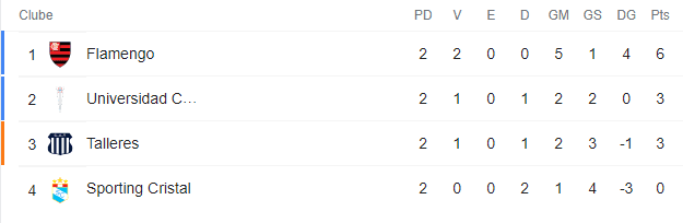 No Grupo H da Copa Libertadores, o Flamengo também tem dominado, ao alcançar os 6 pontos em 2 jogos. Os comandados de Paulo Sousa estão bem encaminhados para alcançarem as oitavas de final, após vencerem o Talleres por 3-1 na 2ª rodada.