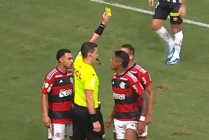 Bruno Henrique, que foi o destaque do Flamengo até então, recebeu um cartão amarelo infantil após reclamar de forma insistente com o árbitro Alex Gomes Stefano. Essa amostragem de nervosismo deixou o atacante visivelmente melindrado nas jogadas seguintes, temendo levar um segundo cartão e ser expulso, o que poderia prejudicar a equipe.