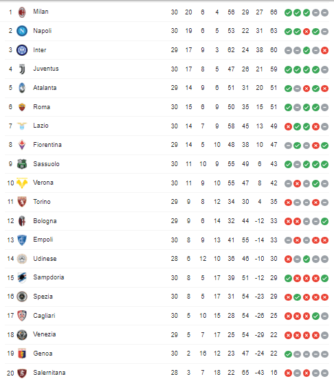 A Série A italiana está mais competitiva que nunca! Com 30 rodadas até ao momento, o AC Milan é o atual líder da competição, com 66 pontos e continua em busca do sonho de voltar a ser campeão nacional, algo que não consegue desde 2011. Será que vai dar para finalmente os "rossoneri" quebrarem o jejum?