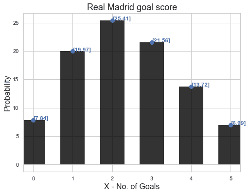 O time "merengue" tentará achar o seu centroavante dentro da área devido à probabilidade de Karim Benzema em converter os gols dentro de área, que ronda os 60 e os 80%. Já fora da área, essa percentagem diminui de 7 a 15%. Sem dúvida que é um goleador, mas a bola tem que estar na área de "los blancos" para que o time tenha mais possibilidades de saír vencedor.