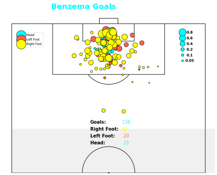 O uso da direita é uma arma letal que o time "merengue" irá utilizar para derrotar o time de Leonel Messi e companhia, já que com essa a perna Karim Benzema marca 90% das vezes, enquanto que com a sua esquerda as probabilidades diminuem em 20%.