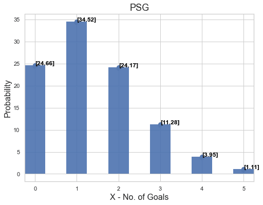 O PSG tem uma probabilidade de 76% de marcar um gol ao Real Madrid no Bernabéu. No entanto, se tiver de fazer 2 gols ou mais, as suas chances reduzem para 41%.