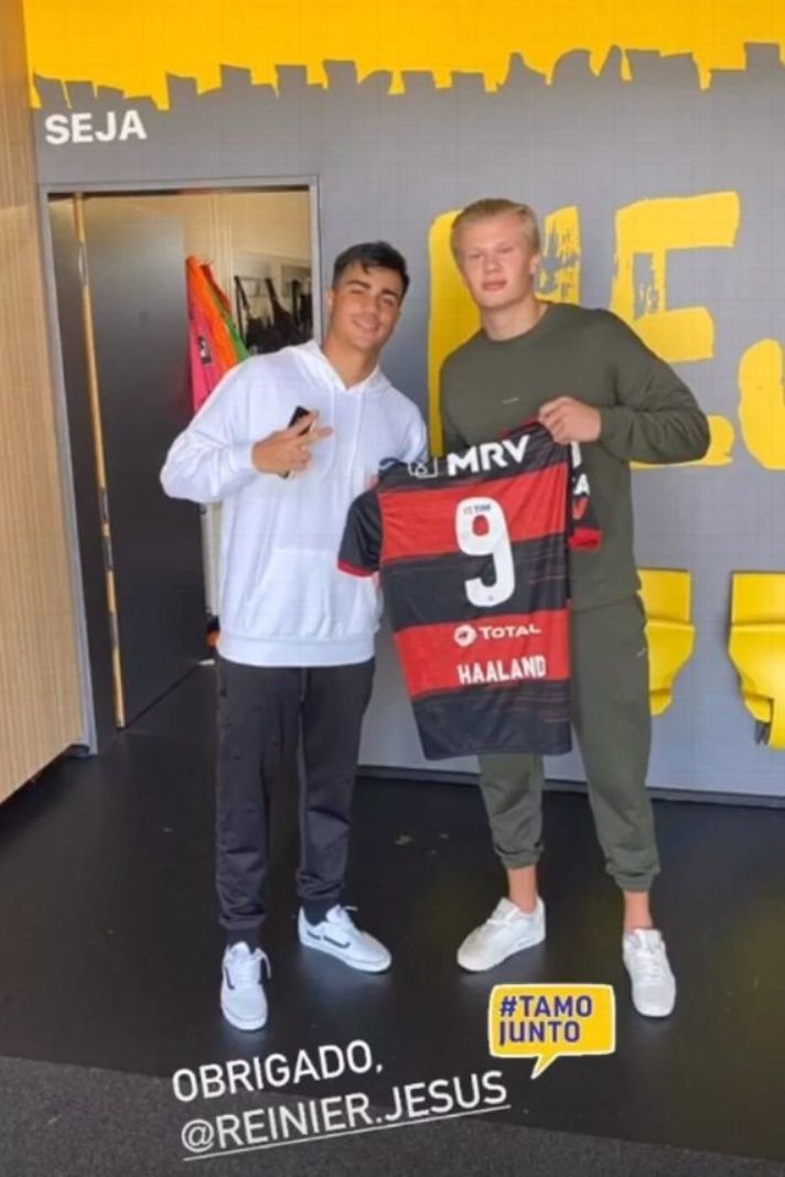 Se Gabriel Barbosa tem ligação próxima como Robert Lewandowski, melhor jogador do mundo, Erling Haaland tem amizade com o ex-Flamengo Reinier, que atua no Borussia Dortmund, emprestado pelo Real Madrid. O craque norueguês de 21 anos ganhou um presente do brasileiro, a camisa 9 do Flamengo, e foi flagrado com o manto em um treino de sua recuperação.