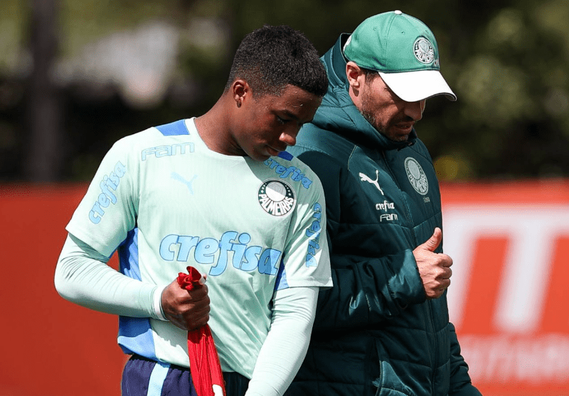 A pressão está grande sobre Abel Ferreira, mas é no bom sentido. Ídolo máximo no Palmeiras, o técnico português está satisfeito com o desempenho de sua equipe dentro de campo, já que o Verdão vai vencendo o Botafogo por 2 a 1, no Rio de Janeiro, abrindo cada vez mais vantagem na liderança do Campeonato Brasileiro. E a pressão é da torcida, querendo ver Endrick estreando na equipe profissional do alviverde imponente.