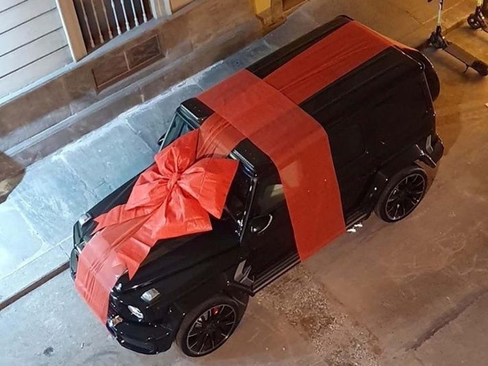 O carro é um Mercedes Classe G e é avaliado em R$ 2,2 milhões. É uma espécie de jipe, alterado pela Brabus e denominado Brabus 800 Widestar, dado como presente em seu aniversário de 35 anos por Georgina Rodríguez e tem seu interior revestido em Alcantara, com motor 4.0 V8 de 585 cavalos de potência e 86,6 kgfm. O modelo vai de zero à 100 km/h em 4,1 segundos e atinge 240 quilometros por hora, além de ter câmbio automático, de 9 velocidades.