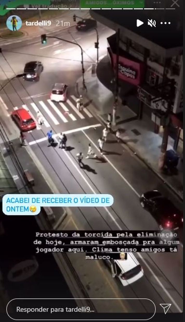 O atacante de 36 anos fez sua estreia no Santos ao entrar na vaga de Carlos Sánchez aos 22 minutos do segundo tempo, mas não conseguiu mudar a história do jogo para classificar o Santos para as semifinais do torneio. Momentos depois do duelo, Tardelli voltava para o hotel em que estava quando foi abordado por quatro veículos e temeu pela vida no ato de vandalismo.