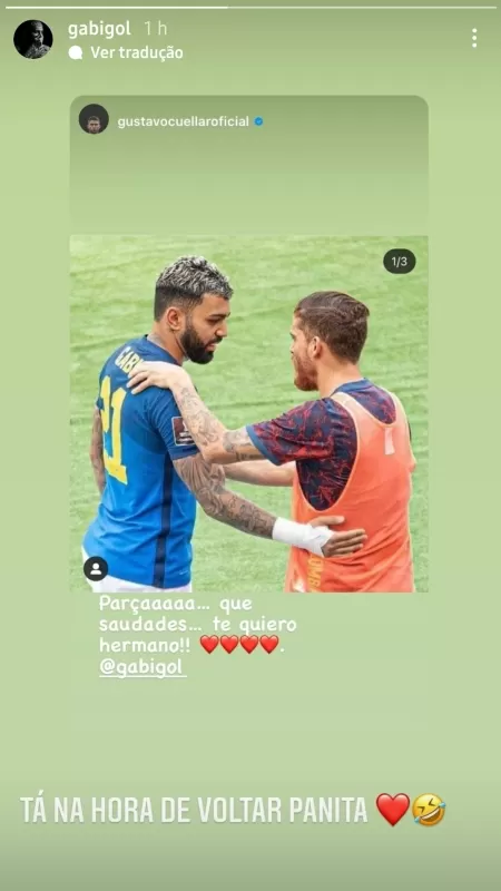Gabigol fez questão de publicar em sua rede social a saudade que está do volante que completa 29 anos nessa quinta-feira (14) e pediu para que o amigo volte a jogar pelo Flamengo. Atualmente em sua posição, o Mengão tem o titular Willian Arão, e os reservas Thiago Maia e Piris da Motta, o que aumentaria a concorrência no disputado meio-campo rubro-negro.