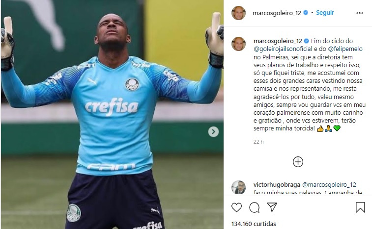 Apesar das saídas surpreenderem pela velocidade no processo, internamente os jogadores sabiam que a atual e próxima presidência do clube queria rejuvenescer o elenco e, para isso, demitiram o goleiro Jailson, de 40 anos, e o volante Felipe Melo, de 38 anos. A decisão, porém, chateou Marcos que ficou muito triste como relatou em postagem nas redes sociais.