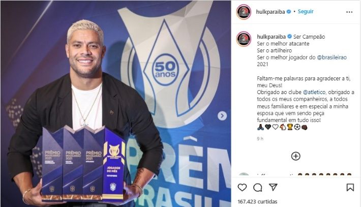 E justamente contra o Palmeiras na semifinal da Copa Libertadores 2021 que Hulk teve participação direta no resultado da partida que levou o Verdão a final para conquistar o tricampeonato. No primeiro jogo no Allianz Parque, em São Paulo, o atacante do Atlético-MG perdeu o pênalti que deixou o placar em 0 a 0 e que eliminou seu time ao empatar em 1 a 1 no Estádio do Mineirão, em Belo Horizonte, e classificar o rival pelo gol qualificado.