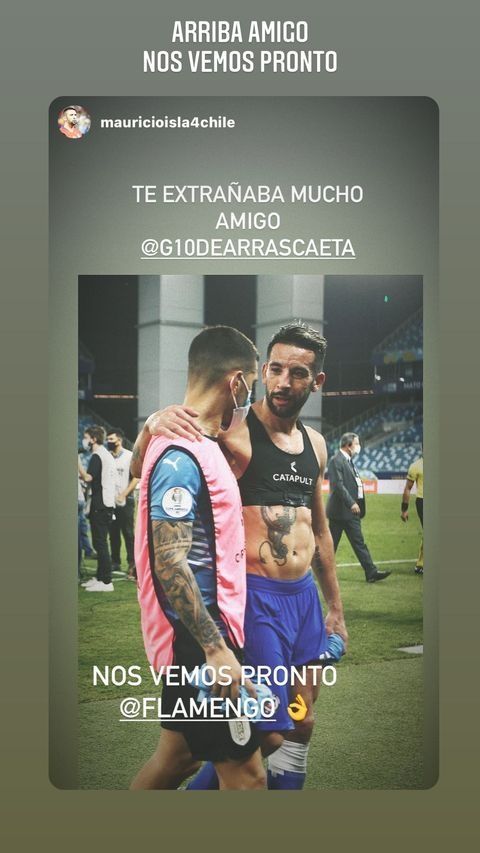 Na rede social, Maurício Isla e Giorgian de Arrascaeta trocaram elogios em que afirmam ter sido muito bom o reencontro entre os atletas que estavam com saudades um do outro, e que voltar ao Flamengo é o maior desejo de ambos, mas isso deve acontecer apenas em julho, já que as equipe estão na zona de classificação para as quartas de final, o Chile já classificado.