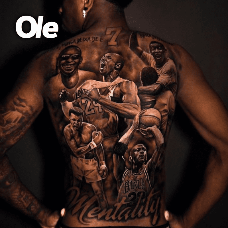 Além da digressão e do futebol, a última tatuagem do jogador do Real Madrid também não passou despercebida. O famoso tatuador espanhol Ganga se encarregou de 'desenhar' as costas do brasileiro com alguns dos rostos mais importantes da história do esporte, como Kobe Bryant, Pelé, Michael Jordan e Muhammad Ali.