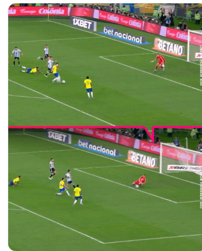 Depois de vários minutos tensos, o jogo começou, aos 60 minutos o Brasil teve clara oportunidade de abrir o placar, mas o goleiro Dibu Marinez travou a opção de gol do Brasil e lembrou como a Argentina salvou na final da Copa do Mundo contra a França, jogada que deu o título à Argentina.