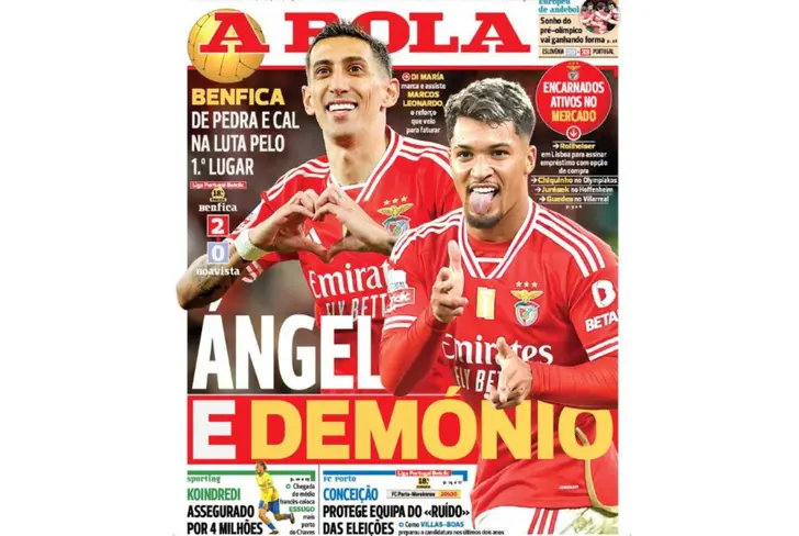 "Ángel e Demônio", é assim que o 'A Bola' de Portugal descreveu a dupla Ángel Di Maria e Marcos Leonardo no último confronto do Benfica. A vitória de 2 a 0 dos encarnados sobre o Boa Vista, pelo Campeonato Português, deu margem para a atuação brilhante do brasileiro, que cada vez mais vai caindo no gosto dos portugueses e colocando seu nome entre os 11 titulares.