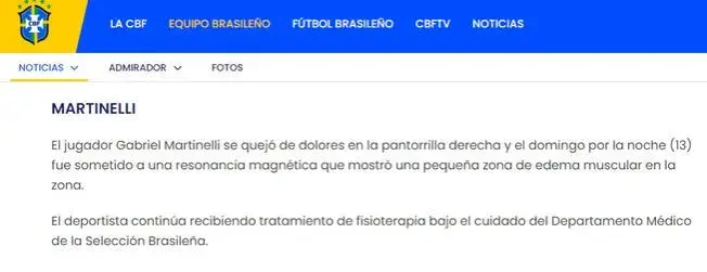 A equipe médica da Seleção Brasileira trabalha contra o relógio para recuperar Martinelli. Porém, a decisão final sobre sua inclusão no onze inicial será tomada horas antes do jogo, após avaliação de sua evolução nos treinos.