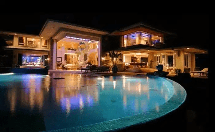 A mansão tem 1.000 metros quadrados habitáveis, cinco quartos e seis banheiros. Não se sabe muitos detalhes, mas o que se sabe é que possui cômodos inusitados até em casas famosas, como: uma cozinha gourmet, uma sala de cinema com lareira, uma sala de meditação para ioga ou uma academia completa para treinar. Possui ainda palco para shows e shows, em uma sala onde também há uma churrasqueira, ideal para o preparo de churrasco.
