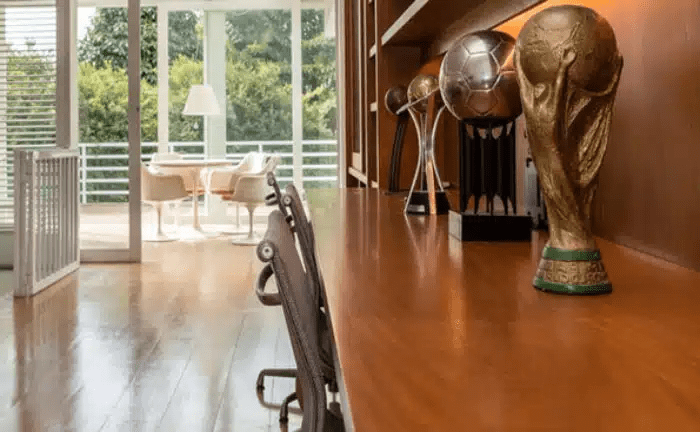 Ronaldinho comprou esta casa porque era espaçosa para organizar grandes festas com amigos e familiares. O ex-jogador de futebol brasileiro sempre gostou de festas, por isso não é de estranhar que tenha notado esta propriedade, que tem espaço suficiente para acomodar um grande número de pessoas. Por fim, Ronaldinho guarda aqui sua maior coleção de camisas e troféus, então quem alugar esta mansão terá a chance de vê-la.