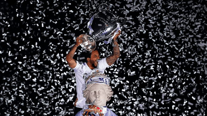 O próprio Marcelo confirmou a sua saída nas comemorações do XIV no Bernabéu. "Fecho um ciclo em Madrid", disse entusiasmado no estádio onde joga desde 2006, quando desembarcou em Madrid ainda criança. Dezesseis anos depois, Marcelo, que tinha alguma esperança de continuar, enfrenta o momento da despedida, embora o jogador espere que seja um até logo. "Já estou ansioso por voltar", disse no relvado do Bernabéu após a celebração.