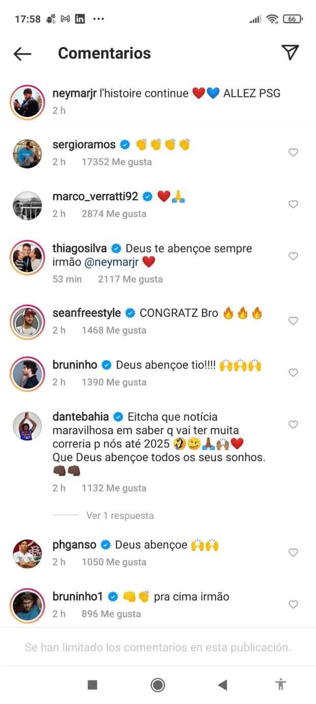 Uma das primeiras mensagens de parabéns saltou à vista. Sergio Ramos escreveu o emoticon de quatro palmas, dando assim sua aprovação a esta reforma. No entanto, esta mensagem pode ter um tom subentendido, já que até agora o Real Madrid não anunciou que vai prorrogar o contrato de capitão, e um dos principais protagonistas do defesa é o clube parisiense.