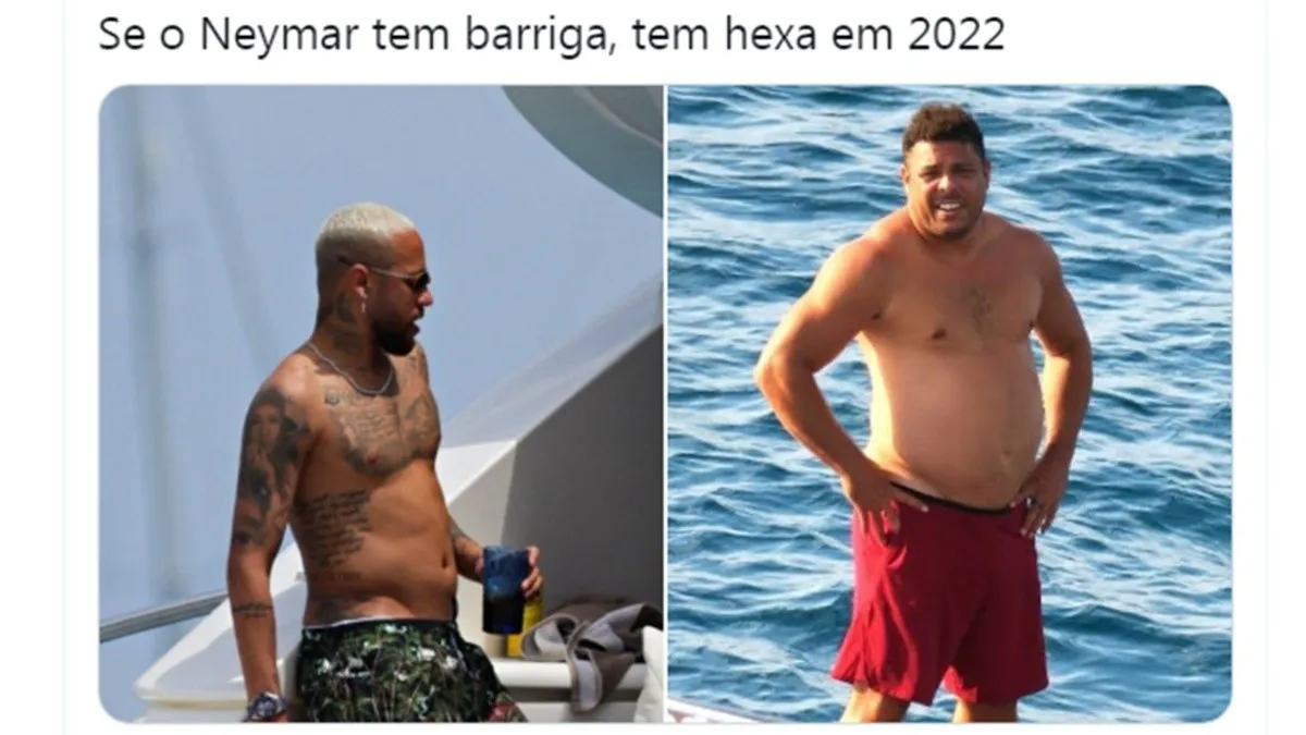 Conhecido pelo perfil físico franzino, inclusive já tendo sido chamado de "filé de borboleta" pelo seu ex-técnico, Vanderlei Luxemburgo, o "shape" do craque chamou muita atenção na internet e, entre críticas e questionamentos, claro que a forma física de Neymar acabou virando meme.
