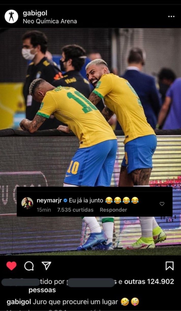 Neymar e Gabriel Barbosa não são os melhores amigos fora do futebol e o clima entre eles não era bom com o término conturbado de Gabigol há alguns anos com a irmã de Neymar, Rafaella Santos. Mas a suspensão de Brasil e Argentina serviu para que ambos pudessem conversar, se entenderem e ainda darem risada de algo que ficou no segredo, como se vê nas postagens dos craques de Paris Saint-Germain e Flamengo.