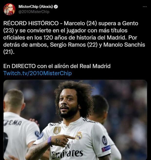 O brasileiro Marcelo, com a dobradinha conquistada até agora nesta temporada, superou os 23 títulos de Paco Gento. Como primeiro capitão, elevou a Supertaça de Espanha aos céus de Riad em Janeiro passado e a quatro jornadas do fim da Liga, foi a primeira vez que o jogador do Real Madrid conquistou o troféu de campeão da Liga, acompanhado por Karim Benzema num momento inesquecível.