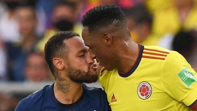 Durante a partida contra a Colômbia neste domingo (10), contudo, diversas pessoas apontaram que o verdadeiro responsável pelo tormento de Neymar é o zagueiro Yerry Mina, da Colômbia. Ao longo do jogo de hoje, os dois se enstranharam em diversos momentos do jogo e, segundo relatos do repórter Eric Faria, houve um momento de tensão que até o técnico Tite precisou intervir para conter os ânimos entre os dois atletas.