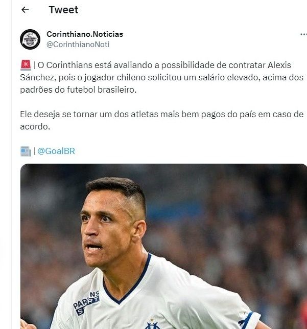 Por outro lado, o Corinthians recebeu 22 milhões de reais da venda de Guedes para Arábia Saudita e teve a folha salarial diminuída porque vai pagar mais 1,2 milhões mensais. Nesse sentido, este espaço na folha seria a brecha para contratar Alexis Sánchez nesta temporada, basta saber qual vai ser o tempo de contrato.