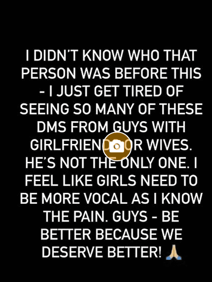 Mensagem sobre a qual ele falou na matéria a seguir, mostrando seu descontentamento e raiva com esse tipo de mensagem, ainda mais sabendo da situação pessoal de Neymar, que tem sido alvo de polêmicas justamente por isso. “Eu não sabia quem era essa pessoa antes disso. Cansei de ver mensagens assim de homens que tem esposa ou namorada. Ele não é o único. Acho que o resto das meninas também deveriam dar mais voz a essas coisas.
