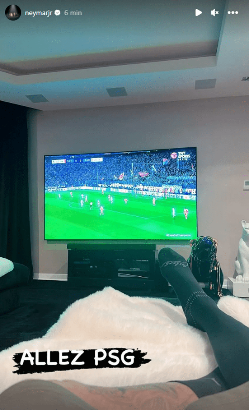 Fora de combate, Neymar registrou em suas redes sociais o apoio diante dos alemães. O camisa 10 do time postou uma foto em que aparece acompanhando de casa o duelo decisivo nesta quarta-feira. E mandou seu apoio com a tradicional frase "Allez PSG!". Foi a mesma contusão que o tirou dos jogos contra Suíça e Camarões, pela Copa do Mundo do Catar.