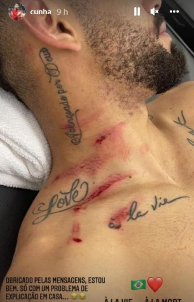 Obviamente, a ação custou ao goleiro um cartão vermelho direto, e Cunha algumas marcas terríveis entre o pescoço e o ombro que ele foi incentivado a mostrar em suas redes sociais após o duelo para a data 15 das Eliminatórias.
