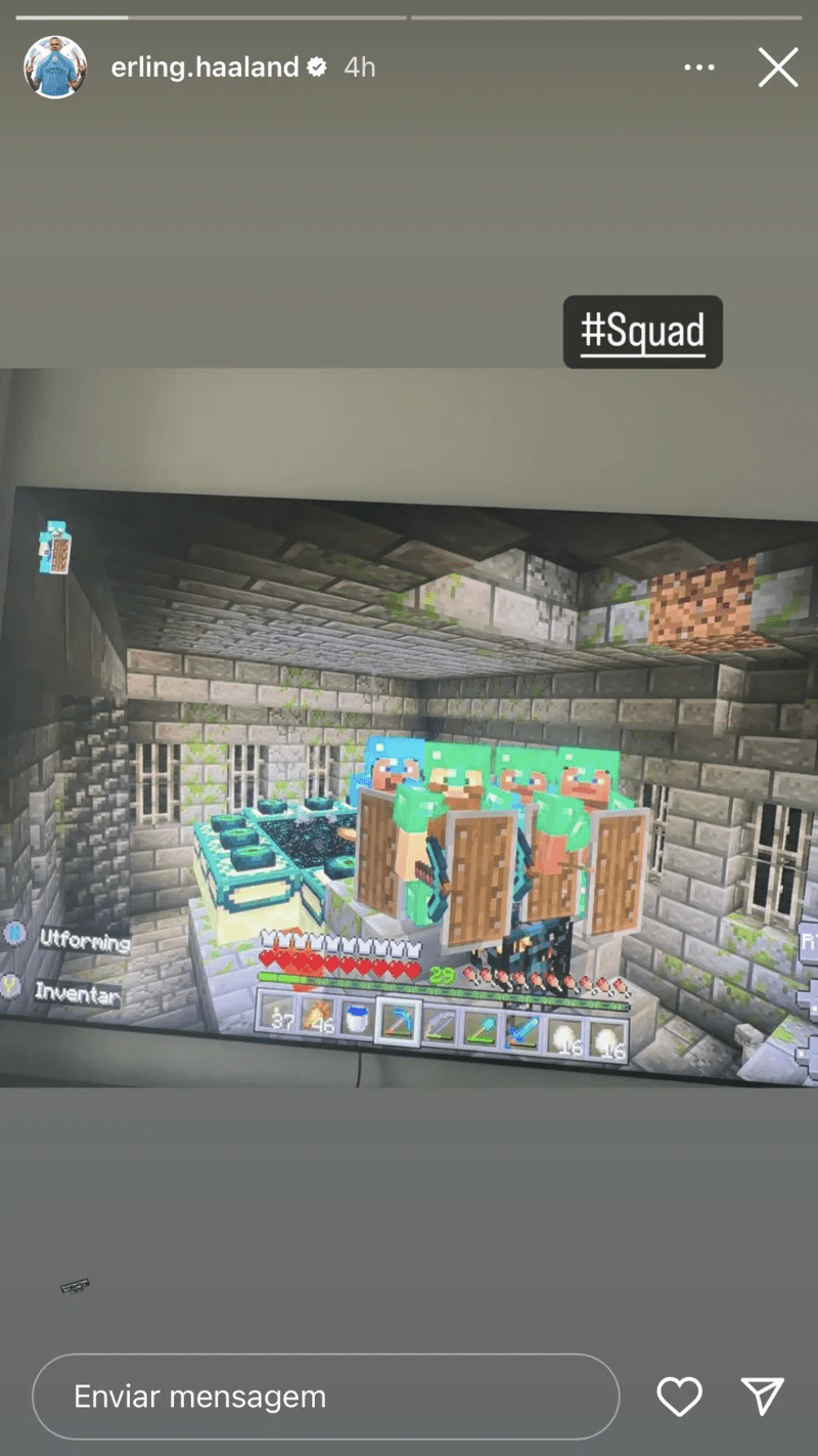 Porém, a comemoração de Haaland foi um tanto quanto peculiar. Fã de games, o camisa 9 publicou uma imagem nas redes sociais jogando Minecraft, e revelou, com um tom divertido, que seria constrangedor contar publicamente que é um assíduo jogador do game conhecido por seus gráficos totalmente pixelados e bem “old ways”.