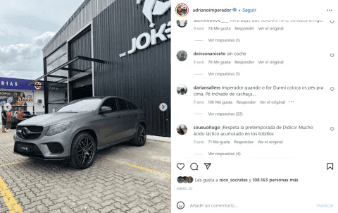 Nomear Adriano Leite Ribeiro no Brasil, Barcelona ou Milão é sagrado. Sua carreira de jogador o levou ao topo. E claro, também encheu a carteira de euros. É por isso que o brasileiro não tem medo de mostrar e, após o roubo de seu Audi Q7 em 2010 na Espanha, postou uma foto em seu Instagram com uma compra formidável.