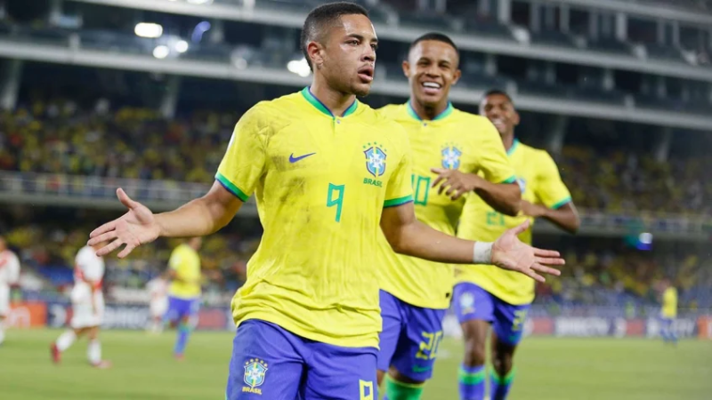 O jornal Mundo Deportivo, de Barcelona, estampou na capa o atacante do Athletico, que marcou mais um gol na vitória de 3×0 sobre a Venezuela, na última sexta-feira (3), pela fase final do Sul-Americano. Segundo os espanhóis, o Barça ligou o alerta pela presença de emissários do Chelsea e do Paris Saint-Germain na Colômbia, onde acontece o torneio. Além dos três clubes, Newcastle e Real Madrid também se interessam por Vitor Roque.