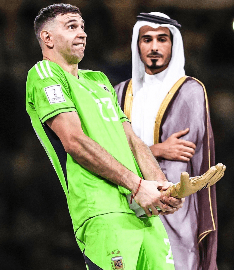 Quando foi chamado para receber a sua medalha de campeão, o goleiro argentino fez um gesto polêmico, que não agradou aos cataris que estavam por perto, devido aos costumes do país. Mesmo assim, "Dibu" não quis saber e extravasou a sua alegria, mesmo que de uma forma que não fosse lá tão atraente. Ele foi eleito o melhor goleiro da Copa.