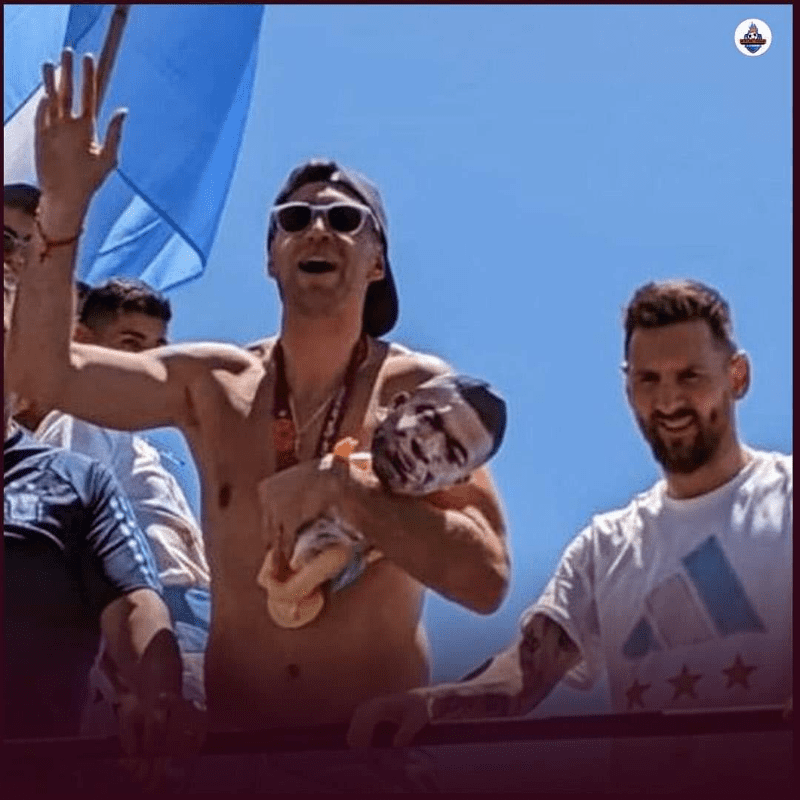 Durante a comemoração do tricampeonato, em cima do ônibus que transportava a delegação da Argentina pelas ruas de Buenos Aires, "Dibu" carregava um bebê de brinquedo, com o rosto de Mbappé, que foi muito "zoado" pelos argentinos por ter dado entrevistas menosprezando o futebol da América do Sul e enaltecendo os europeus.
