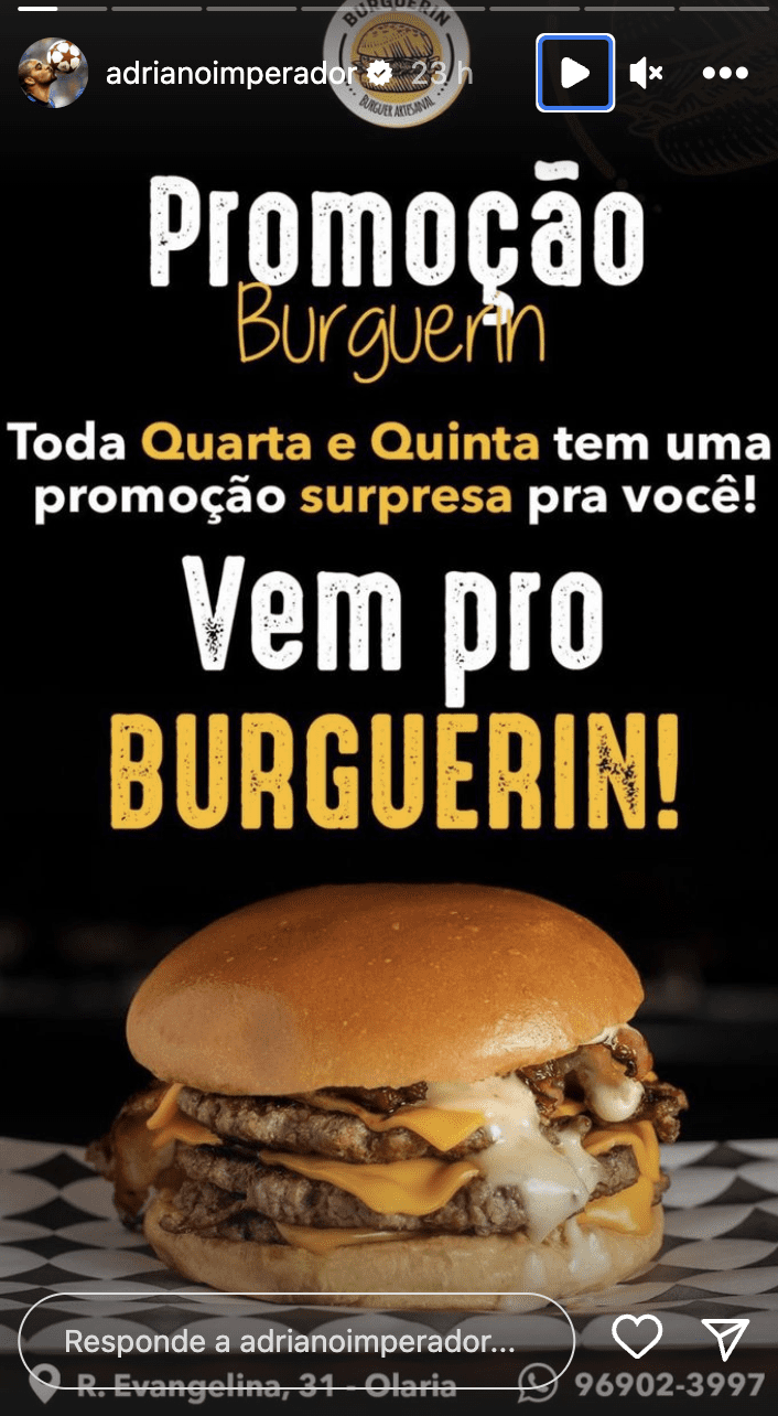 Agora Adriano Leite está ausente dos ecrãs e mais se sabe sobre ele através das redes sociais. Uma de suas últimas postagens foi promover um novo negócio de hambúrgueres no Instagram. O ex-atacante da Inter de Milão ou do Flamengo aproveita a popularidade que conquistou como jogador para gerar renda graças às suas redes sociais.