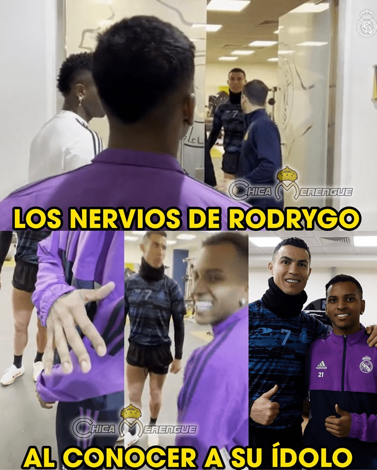 Durante excursão para a Arábia Saudita, onde disputou a Supercopa da Espanha, o Real Madrid promoveu o reencontro com Cristiano Ronaldo. O português, que ainda não estreou pelo novo clube, posou para fotos com jogadores como Vinicius Junior e Rodrygo. O ex-santista, inclusive, tremeu só de ficar perto do astro português.