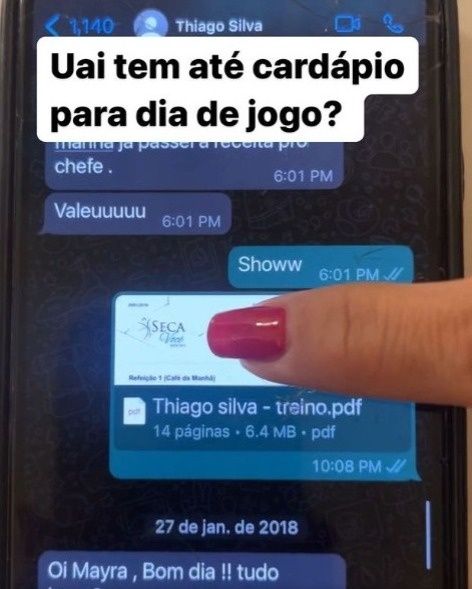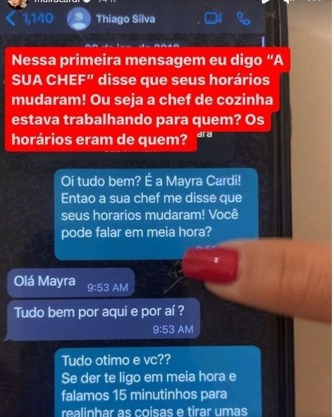 Veja os prints das conversas entre Thiago Silva e Maíra Cardi