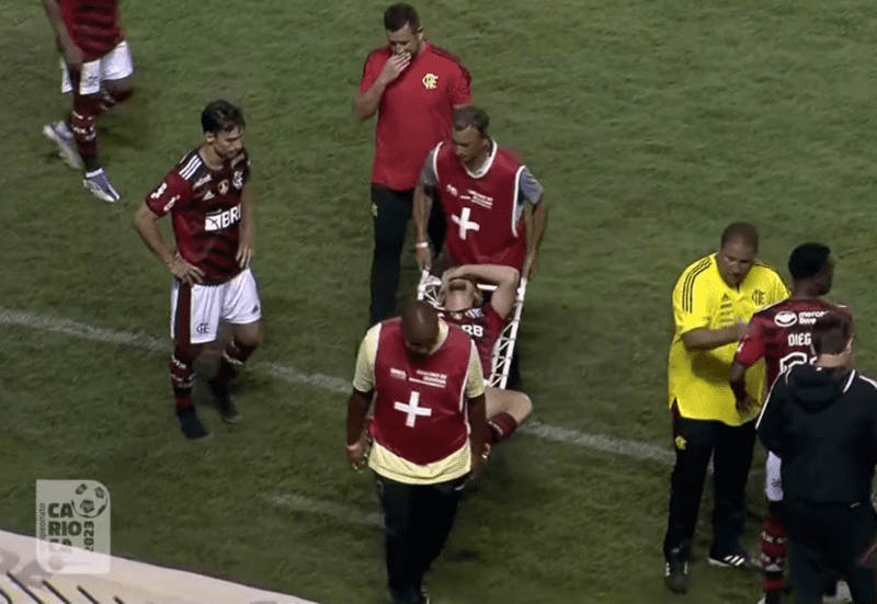 Depois de mais de um ano emprestado a clubes como Atlético-GO e Bahia, Gabriel Noga fazia a sua reestreia com o Mengão na partida contra o Bangu, pelo estadual e que terminou empatada em 1 a 1. O zagueiro saiu do banco e substituiu Rodrigo Caio, que voltou de lesão após mais de seis meses parado. Porém, em seu primeiro lance na partida, Noga se machucou sozinho e teve de ser substituído. O experiente camisa 3, que deu lugar ao cria do Ninho, foi o primeiro a ampará-lo.